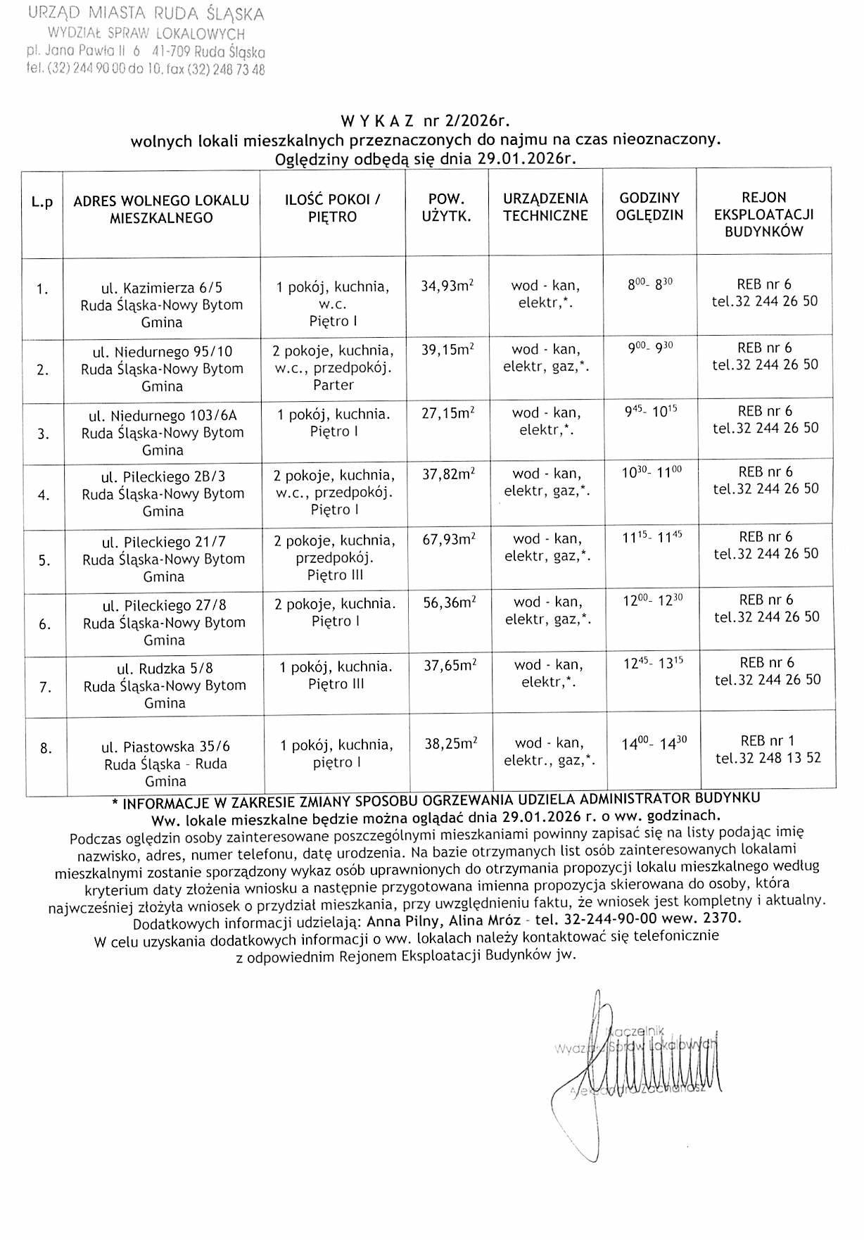 Wykaz Mieszkań 22-01-2026 - 29-01-2026